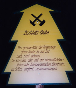 1101 Spateisengrube "Anna III" Der Bergbau war um 1800 bereits bekannt. Es wurden stark manganhaitiger Eisenspat mit ca. 72 % Fe-Gehalt und an der unmittelbaren Tagesoberfläche Brauneisen abgebaut. Bekannt sind der "alte Schacht" mit der angeblichen Teufe von 55 Meter (vor 1873) und der "neue Schacht"I der 1873 auf ca. 56 Meter und 1917 weiter geteuft wurde. Aus dem Röschengraben östlich des Gangzuges ist ein ca. 250 m langer Stollen querschlägig zum Gangstreichen zur Wasserlösung aufgefahren worden. Ein zweiter Stollen verfolgt streichend ein Nebentrum des Hauptganges nach Südosten. Geringer Abbau erfolgte bis 1917. Letzte übertägige Schurfarbeiten fanden 1952 statt.